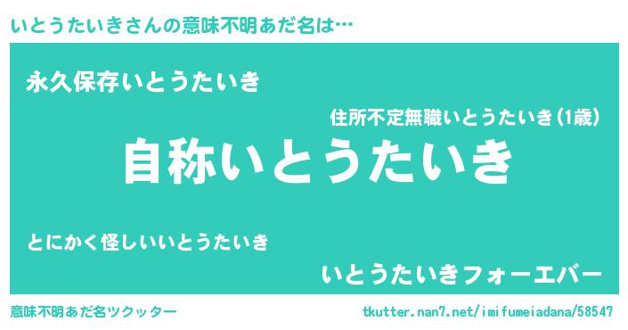 | ヒーロー風カッコイイあだ名 | 『サイバー戦士イトウタイキ』 |