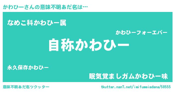 | 男性向けラノベタイトル風あだ名 | 『Re:かわひーから始める異世界生活』 |