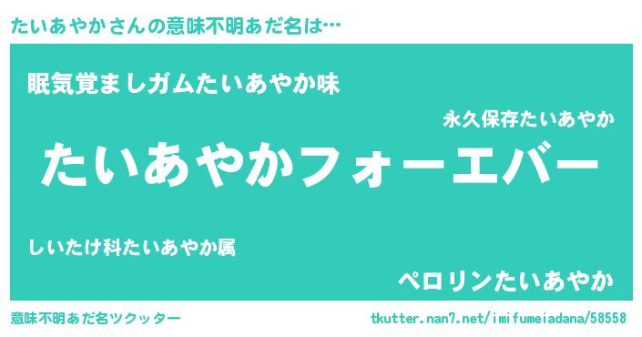 | 欧米人風あだ名 | 『たいあやかクリステル』 |