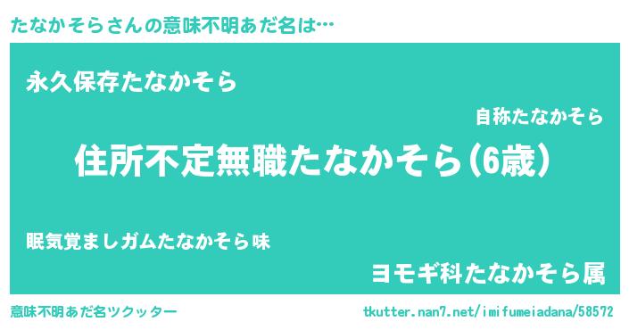 | 女子向けラノベタイトル風あだ名 | 『乙女ゲームの破滅フラグしかない悪役たなかそらに転生してしまった…』 |