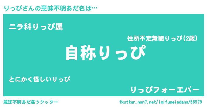 | 男性向けラノベタイトル風あだ名 | 『Re:りっぴから始める異世界生活』 |