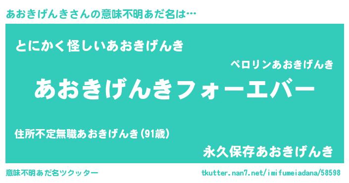 | 男性向けラノベタイトル風あだ名 | 『やはりあおきげんきの青春ラブコメはまちがっている 』 |
