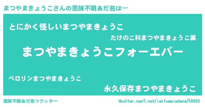 | ポケモン風あだ名 | 『マツヤダネ』『ヒマツヤマキョウコ』 |