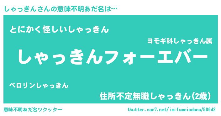 | ファンタジー風あだ名 | 『エターナルシャッキンー』 |