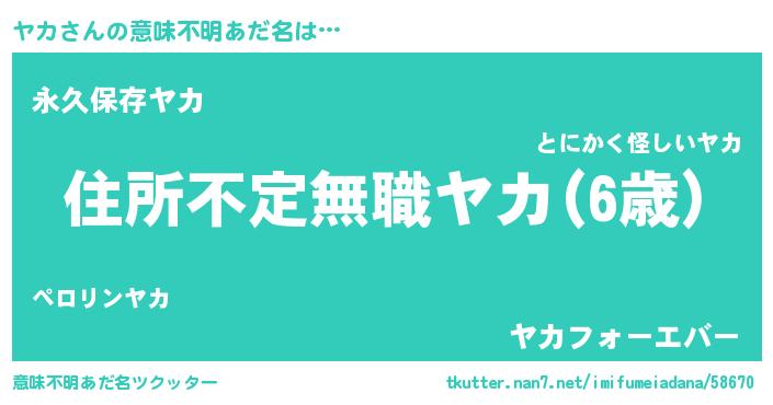| ポケモン風あだ名 | 『ヤーカイ』『ゼニヤカ』『ヤカダネ』 |