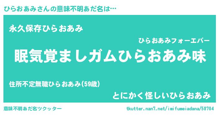 | ヘコむあだ名 | 『ひらおあみ(笑)』『ひらっちょ』 |