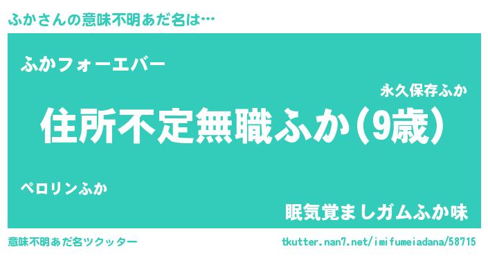 | ヒーロー風カッコイイあだ名 | 『仮面フカダー』『ウルトラふかマン』 |