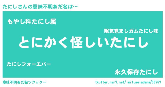 | ポケモン風あだ名 | 『ヒタニシ』『タニキング』 |