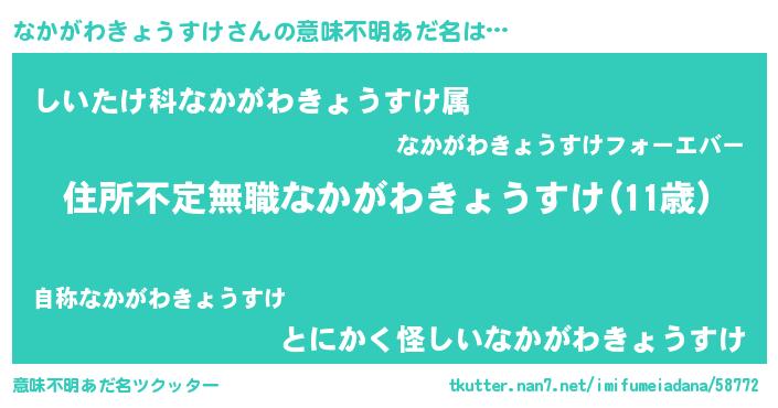 | 男性向けラノベタイトル風あだ名 | 『この素晴らしい世界になかがわきょうすけを!』 |