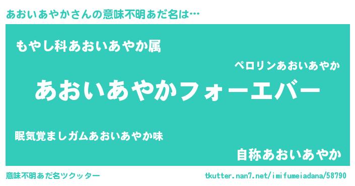 | 欧米人風あだ名 | 『あおいあやかクリステル』 |