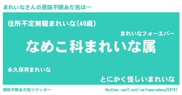 | 料理風あだ名 | 『まれいなごはん』 |