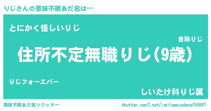 | ヘコむあだ名 | 『りじを』『豆乳』『りじ(遠い目)』 |