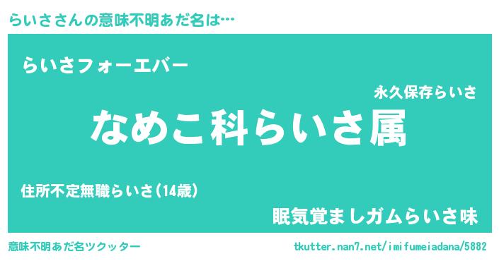| 男性向けラノベタイトル風あだ名 | 『転生したららいさだった件』 |