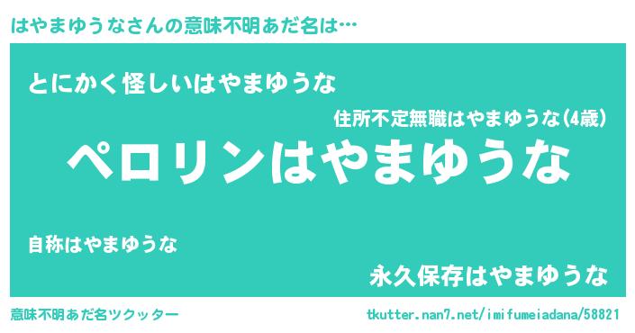 | 胡散臭い通販商品みたいなあだ名 | 『必ず成功するブレスレット…その名も「はやまゆうな」』 |