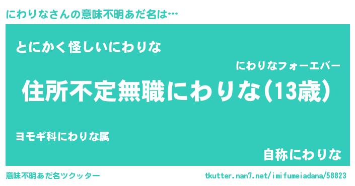 | ポケモン風あだ名 | 『ニーワイ』『ヒニワリナ』 |