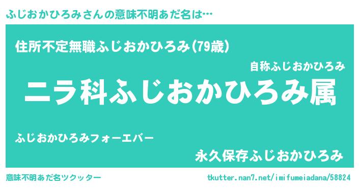 | 男性向けラノベタイトル風あだ名 | 『ふじおかひろみに滅ぼされるだけの簡単なお仕事です』 |