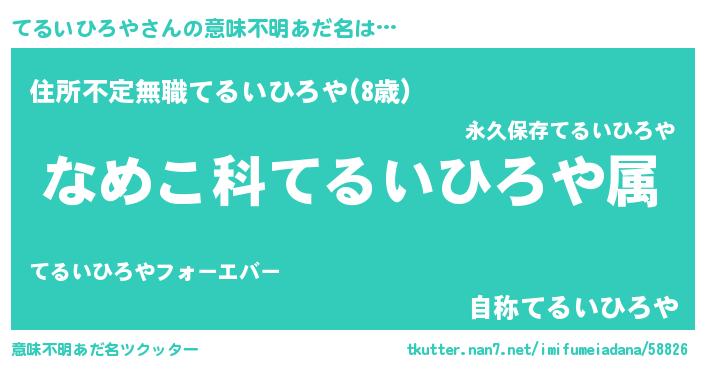 | ヘコむあだ名 | 『てるいひろや(小並感)』『つくし』 |