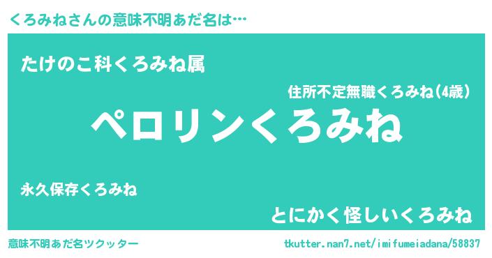 | ヘコむあだ名 | 『くろにー』『くろぷりん』『つくし』 |