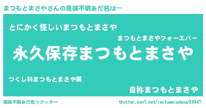 | ポケモン風あだ名 | 『ゼニマツ』『ヒマツモトマサヤ』 |