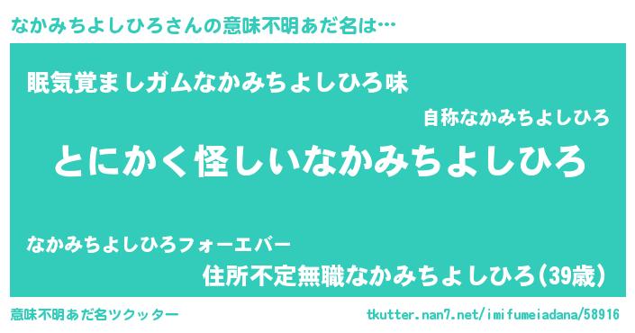 | 伝説のあだ名 | 『孤高の遊び人なかみちよしひろ』 |