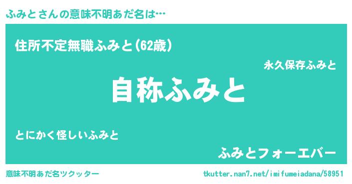 | 男性向けラノベタイトル風あだ名 | 『Re:ふみとから始める異世界生活』 |