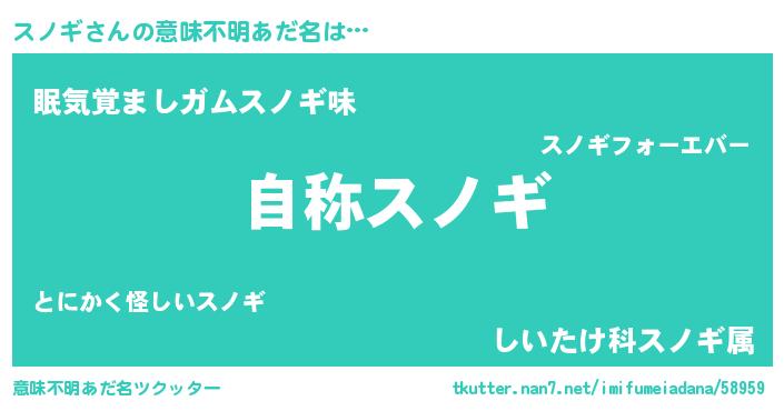 | ヒーロー風カッコイイあだ名 | 『超時空戦士スノギ』『慈愛の使者スノギ』 |