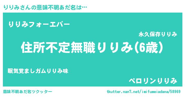 | 男性向けラノベタイトル風あだ名 | 『魔弾の王とりりみ』『りりみの憂鬱』 |