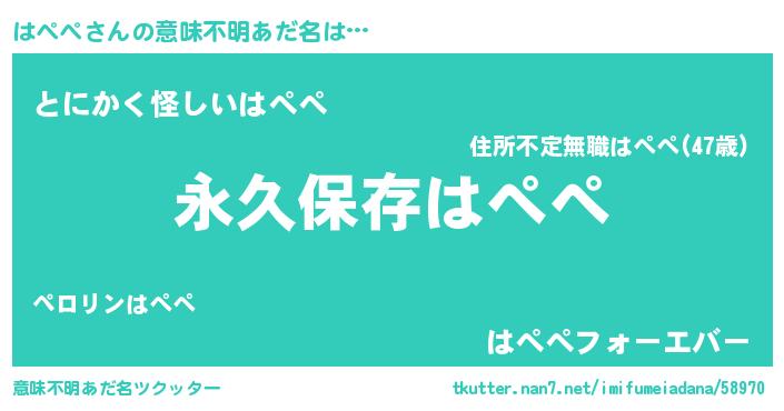 | 胡散臭い通販商品みたいなあだ名 | 『来世でも幸せになれる健康食品…その名も「はぺぺ」』 |