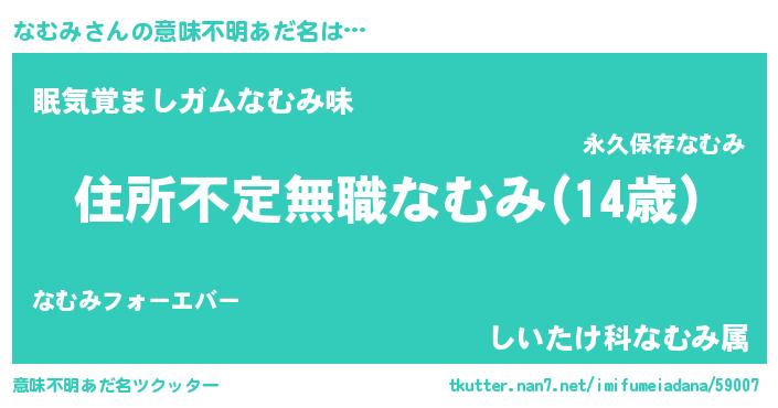 | 男性向けラノベタイトル風あだ名 | 『この素晴らしい世界になむみを!』 |