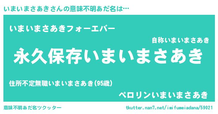 | 男性向けラノベタイトル風あだ名 | 『誰もが恐れるあのいまいまさあきが、ぼくの専属メイドになるようです。』 |