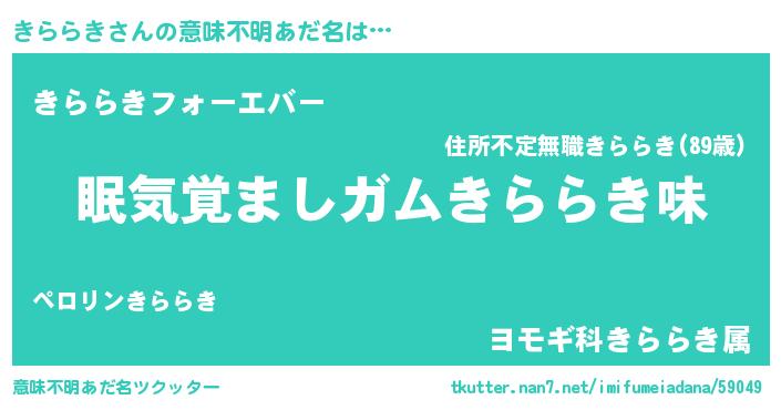 | ポケモン風あだ名 | 『キックウザ』『キララダネ』 |