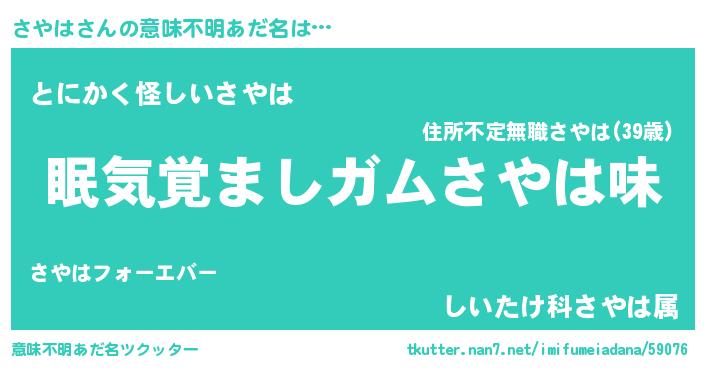 | ヒーロー風カッコイイあだ名 | 『慈愛の使者さやは』『炎刃騎士サヤ』 |