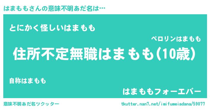 | 男性向けラノベタイトル風あだ名 | 『魔弾の王とはまもも』 |