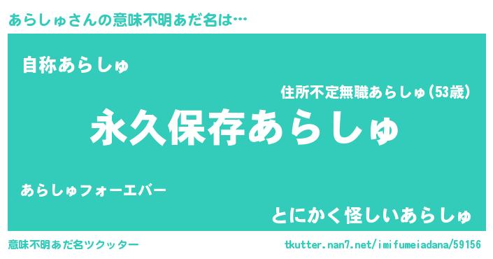 | 男性向けラノベタイトル風あだ名 | 『あらしゅという概念が存在しない退屈な世界 』 |
