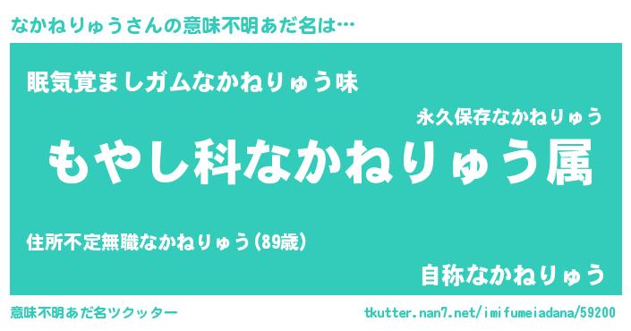 | 男性向けラノベタイトル風あだ名 | 『なかねりゅうに滅ぼされるだけの簡単なお仕事です』 |