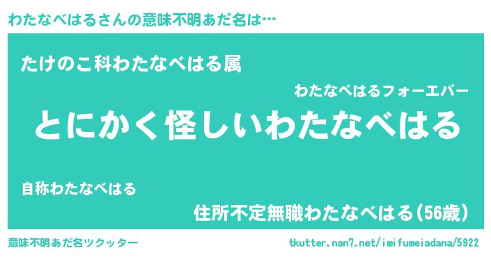 | 女子向けラノベタイトル風あだ名 | 『わたなべはる様がみてる』 |