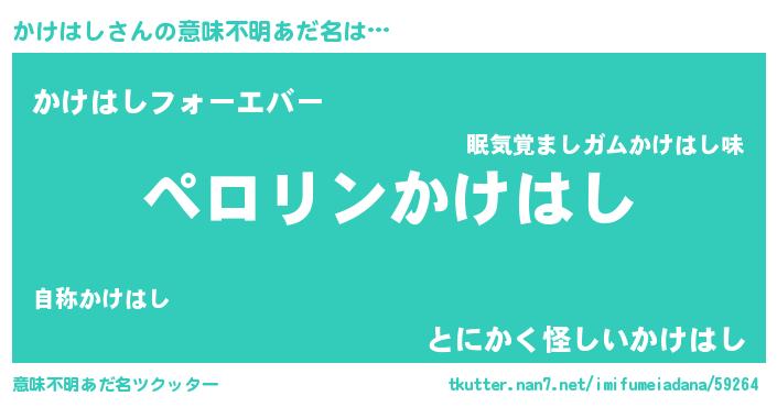 | ヒーロー風カッコイイあだ名 | 『スーパーカケハシ』『幻影騎士カケ』 |