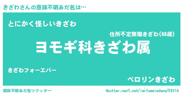 | 男性向けラノベタイトル風あだ名 | 『きざわに滅ぼされるだけの簡単なお仕事です』 |