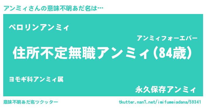 | 女子向けラノベタイトル風あだ名 | 『アンミィが死なない童話 林檎のアンミィの診療簿』 |