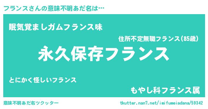 | ヘコむあだ名 | 『フランス(苦笑)』『フラを』 |