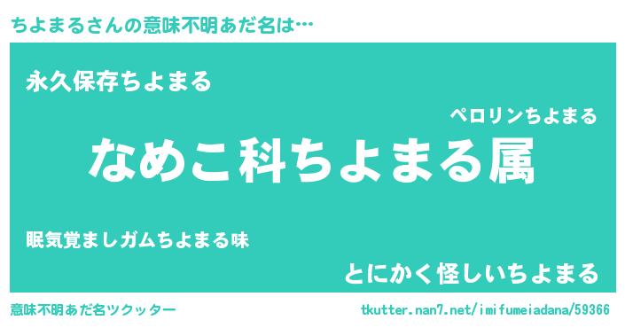 | 男性向けラノベタイトル風あだ名 | 『転生したらちよまるだった件』 |
