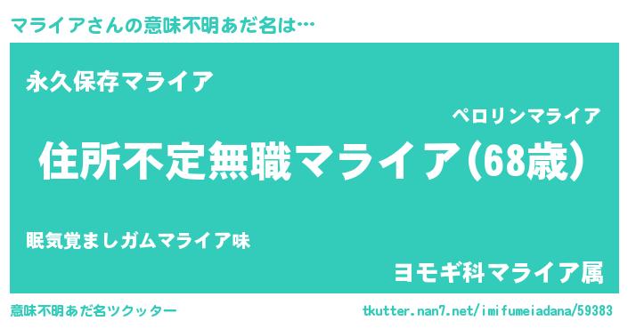 | ヘコむあだ名 | 『マライア(苦笑)』『マラにゅー』 |