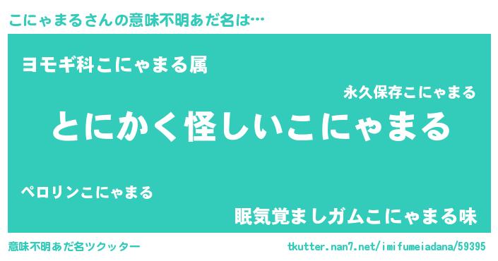 | 男性向けラノベタイトル風あだ名 | 『こにゃまるの嫁は女の子じゃないと思った?』 |