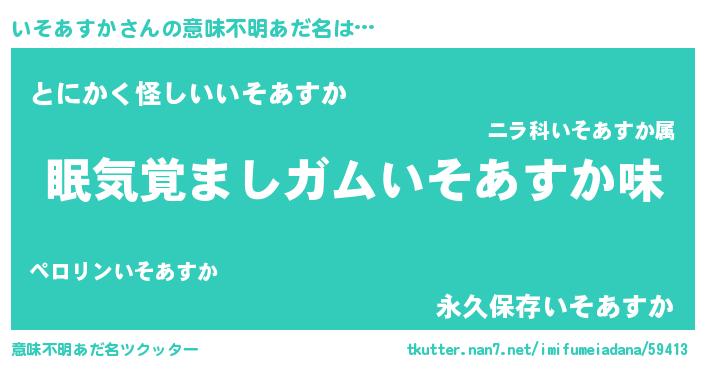 | ヒーロー風カッコイイあだ名 | 『天空の使者いそあすか』『幻影騎士イソ』 |