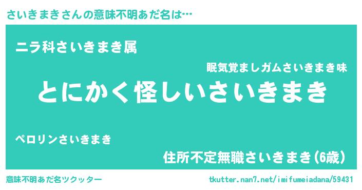 | 男性向けラノベタイトル風あだ名 | 『冴えないさいきまきの育てかた』 |