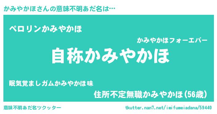 | 肩書あだ名 | 『かみやかほ総統』『かみやかほ社長令嬢』 |