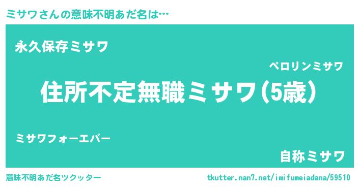 | ポケモン風あだ名 | 『ミーサイ』『ゼニミサ』『ミサゴンZ』 |