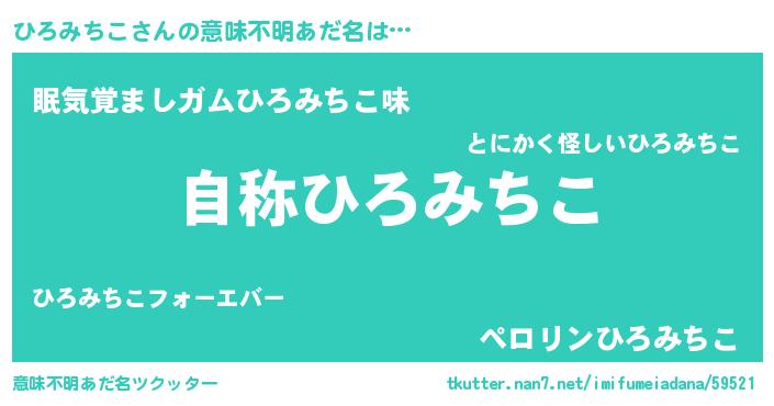 | 男性向けラノベタイトル風あだ名 | 『Re:ひろみちこから始める異世界生活』 |