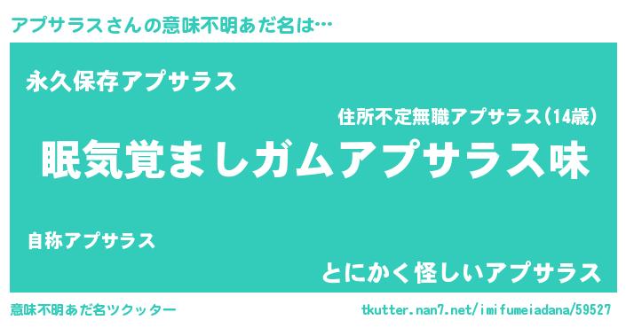 | ヒーロー風カッコイイあだ名 | 『慈愛の使者アプサラス』『幻影騎士アプ』 |