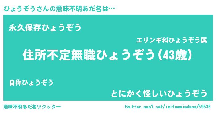 | 男性向けラノベタイトル風あだ名 | 『この素晴らしい世界にひょうぞうを!』 |